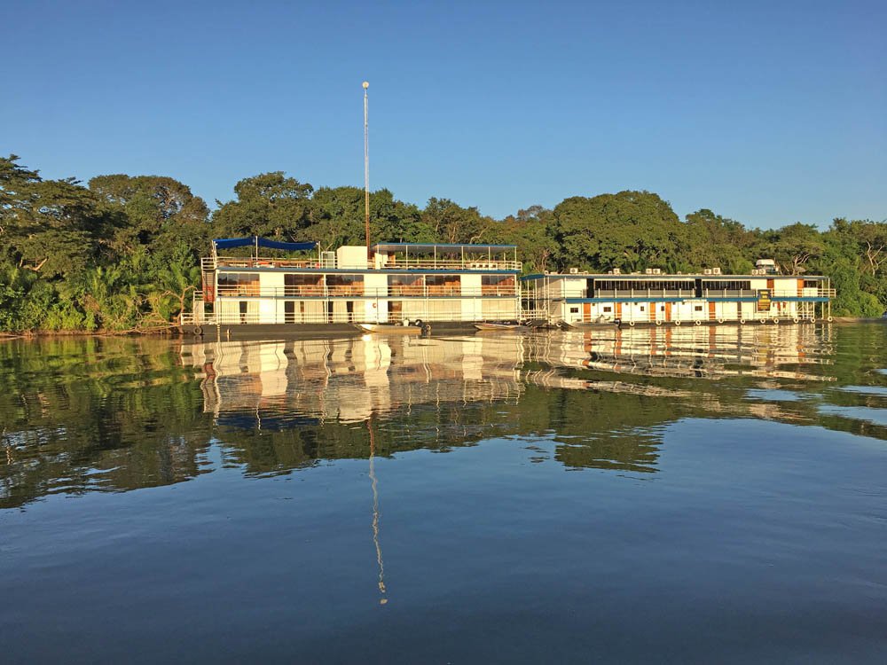 A bordo de um floating hotel de luxo, você navega pelos rios do Pantanal.